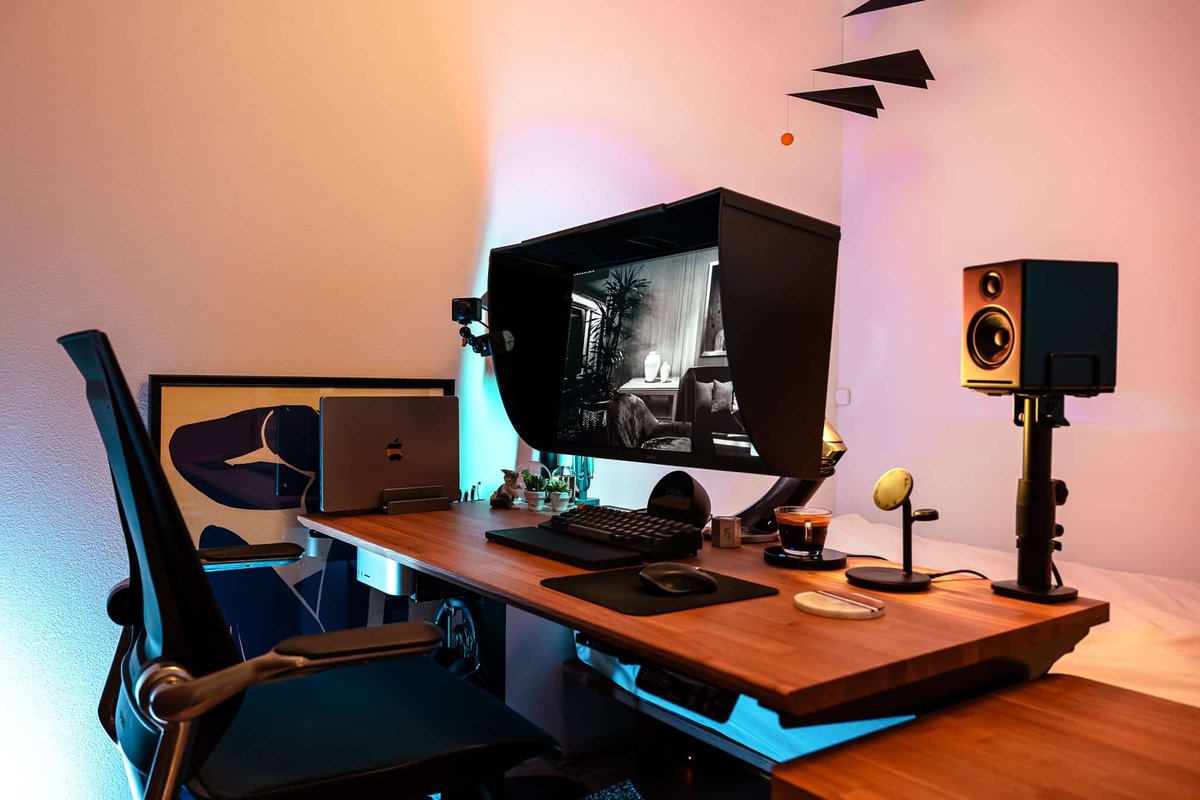 2024年のデスクレシピ2024-12-31·18 minsComputer What I Bought Itemonaliexpress Hardware Review Itemonamazon Affiliate Shotonnikon美しいタモ材の天板を組み合わせた FlexiSpot E7H 昇降デスクを中心に、4Kカラーマネジメントモニターや高品質なオーディオシステムで機能性を確保しつつ、複数の Philips Hue 間接照明とアート作品で空間の質を高めた書斎に仕上がりました