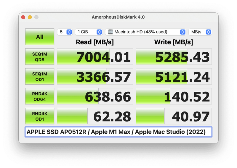 AmorphousDiskMarkでの Apple Mac Studio (2022) の計測結果
