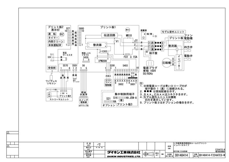 1カ月以上過ぎたある日、「動作実績のあるBRP087A42をS224ATESに付けられれば良いのではないか?」と思いつきます。S224ATESのR224AES室内機の電気配線図を見てみると、オプションのプリント板3を付ければ、BRP087A42を接続するためのS21端子が増設できそうです。ダイキンは、こういう電気配線図もしっかり公開しているのが良いですね。