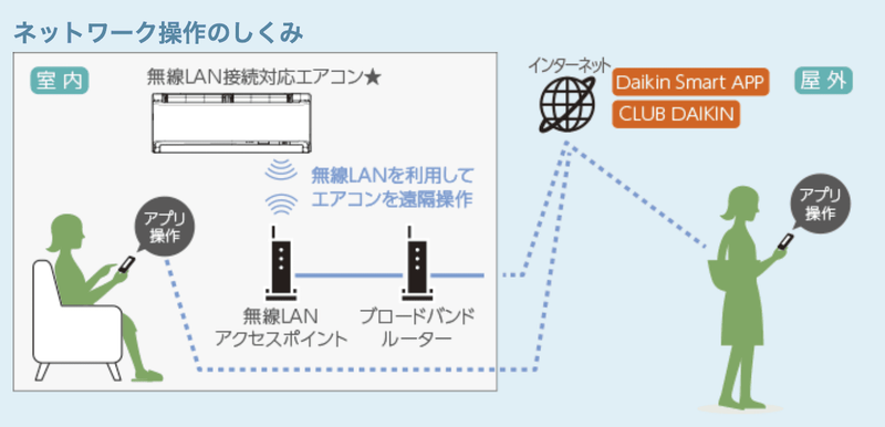 S224ATESのネットワーク対応のページをよく見ると、室内からもインターネットを経由してエアコンにアクセスしている絵になっています。つまり、今までのローカルAPIは廃止され、クラウドAPIだけになってしまったように見えます。