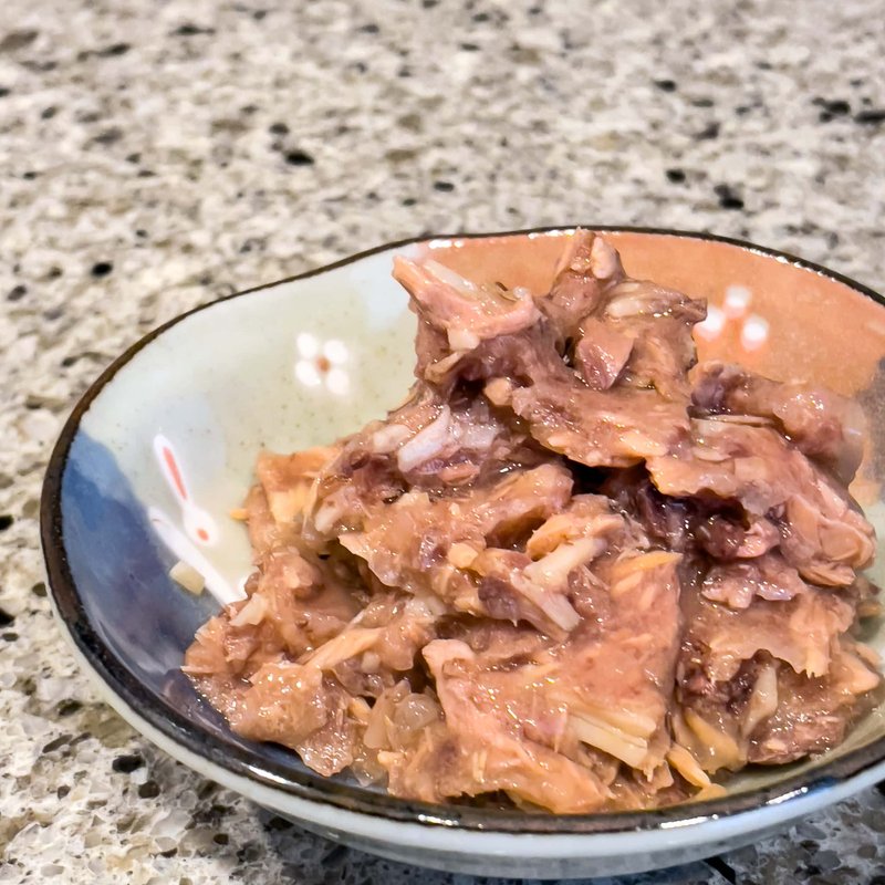 皿に盛った いなば 金のだし パウチ まぐろ・かつお かにかま入り