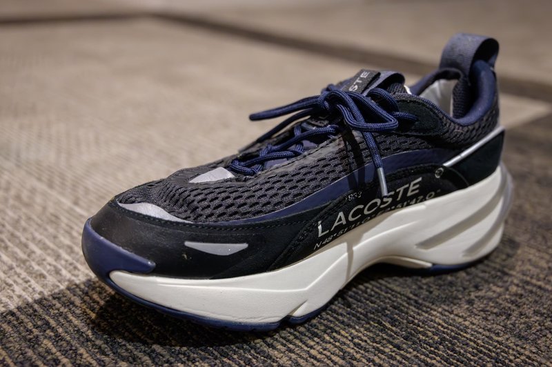 40代の私にはLacosteは上の世代のおじさんのポロシャツの印象でブランドイメージが良くないのですが、今の20代にはもはやそのイメージもなくおしゃれなブランドのようです。Lacoste Odyssa のワニのロゴは控えめで、土踏まず側に大きめにLACOSTEとプリントされていて、40代にも抵抗ありません。