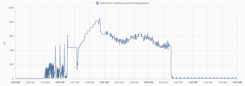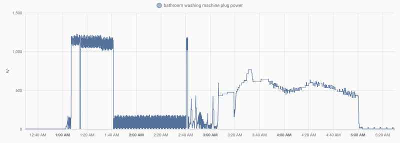 スマホ対応についてですが、洗濯機に遠隔操作性は求めていないものの、洗濯終了通知は欲しかった機能です。終了アラームを聞き逃して洗濯後の服が入りっぱなしということがよくあり、スマートプラグで電力量を監視して Home Assistant から通知する仕組みを自作していました。しかし、洗濯機は脱水と乾燥の間に電力量がゼロになるタイミングがあったり、False Alarm をゼロにすることは難しかったので、洗濯機自体が対応してくれるのは助かります。