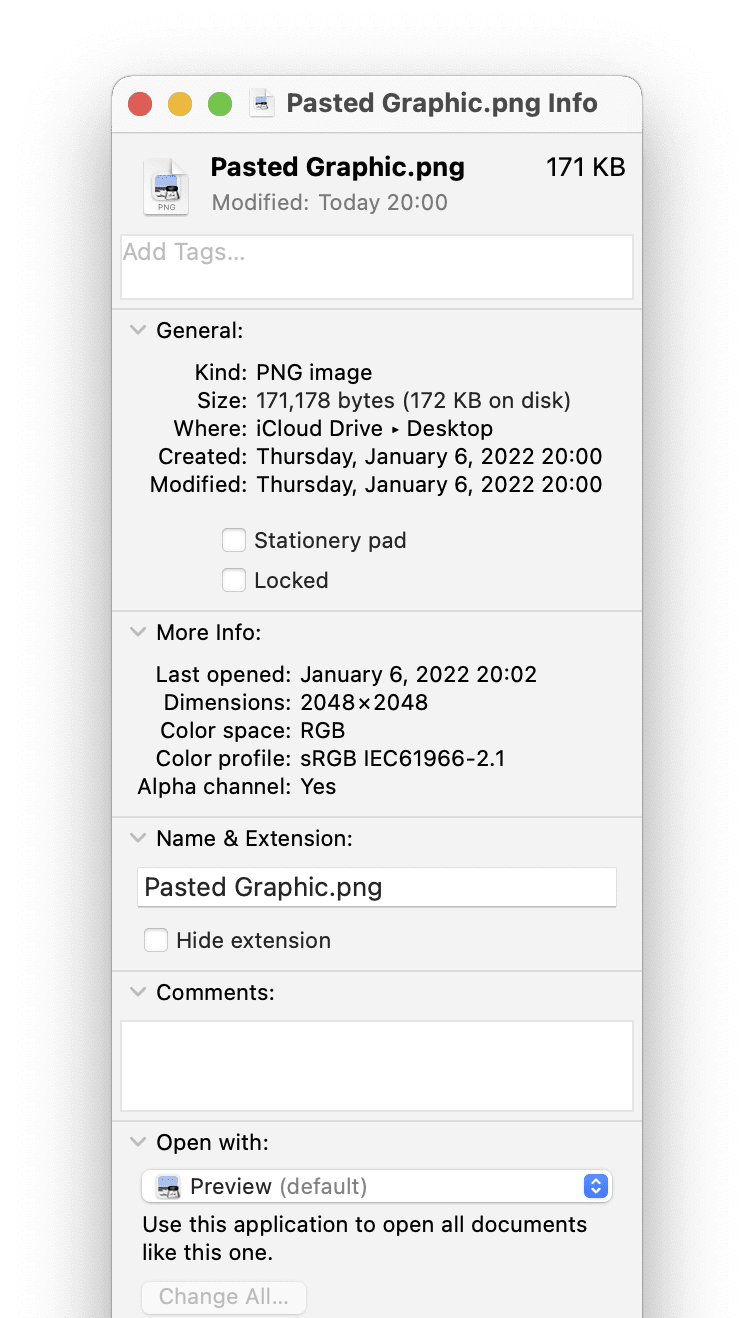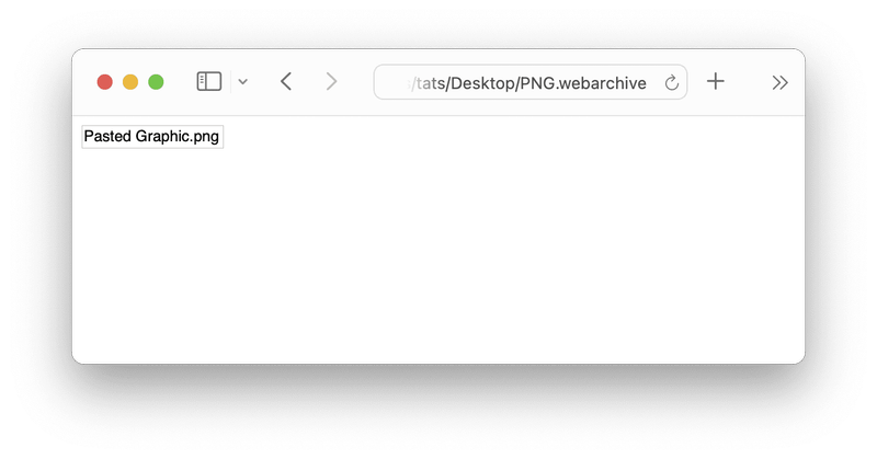 «class PNGf», 26852, «class 8BPS», 110706, GIF picture, 7429, «class jp2 », 55754, JPEG picture, 31236, TIFF picture, 1052060, «class BMP », 1048630, «class TPIC», 38022画像を Text Edit にコピペしてWebアーカイブ書類として保存し、それをSafariで開いてみましょう。Pasted Graphic.png になっており、PNGとしてペーストされたことが確認できます。私の使用した99KBのPNGは171KB程度に収まりました。