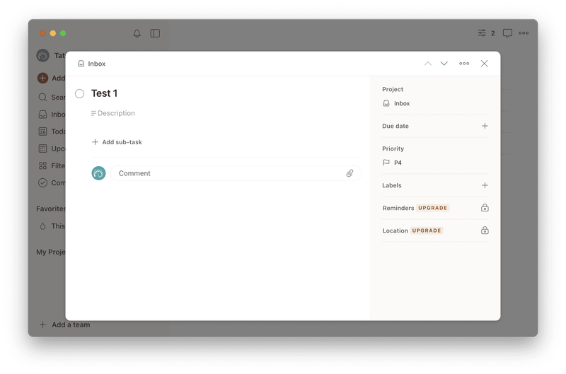 このように、Todoist for Mac のモーダルウインドウの欠点が目立つ一方、メリットが感じられなかったため、RTMからの移行先はTickTickにしました。