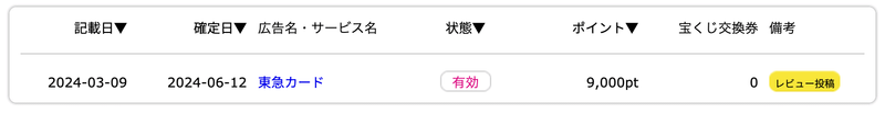 手続きの面倒さで諦めてしまいがちですが、救いはハピタス経由で TOKYU CARD ClubQ JMB を申し込むと8,000pt(8,000円相当)もらえることでしょうか。さらにハピタスのアカウントがまだない場合は、以下から私の紹介で2024/8/31までに新規登録すると、最大1,500ptもらえます。