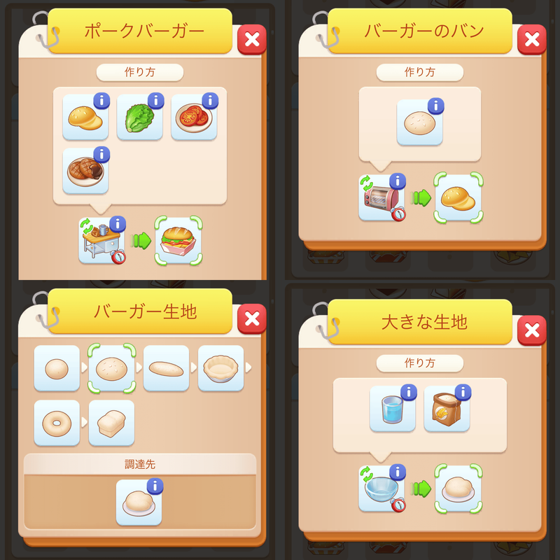 例えば、ポークバーガーを作る場合は以下のようになります。