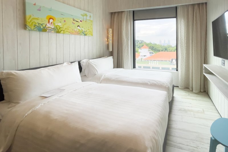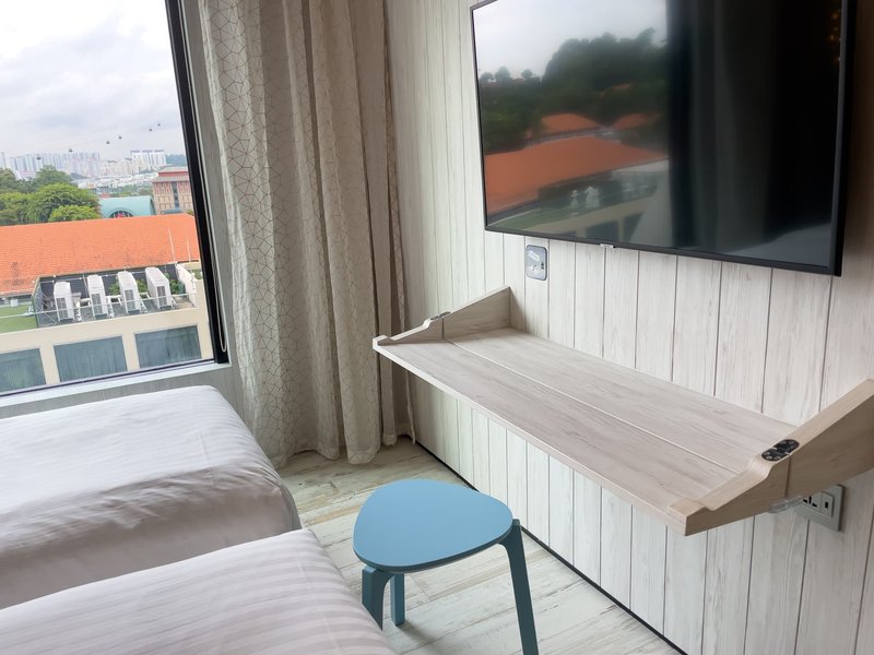 Village Hotel Sentosa はカジュアルな雰囲気なものの安っぽくはない、新しいホテルです。Deluxe Room はやや狭いですが、折りたたまれたデスクがあります。また、プールは広めのインフィニティプールになっており、Adoventure Cove Waterpark では広すぎる未就学児や、ただゆっくりしたい大人には良いでしょう。