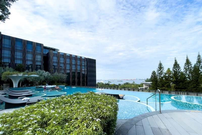 プールは広めのインフィニティプールになっています。ウォータースライダーはありませんが、未就学児用の滑り台と流れるプールがあります。大人のためにはプールバーがあります。ただ、セントーサ島にいるなら Adventure Cove Waterpark に行ったほうが良い気もします。Adoventure Cove Waterpark では広すぎる未就学児や、ただゆっくりしたい大人向けでしょうか。
