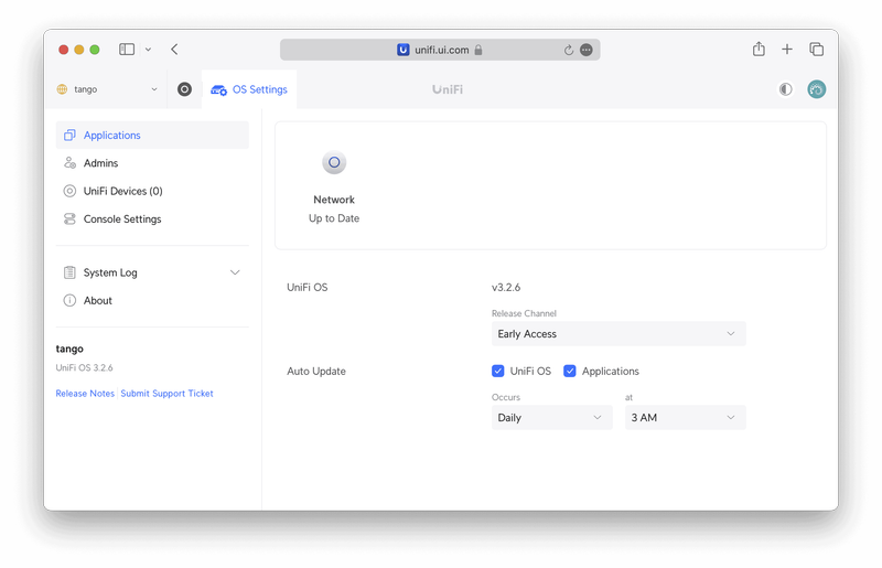今回のレビューには UniFi OS 3.2.6 + UniFi Network 8.1.113 を使用しています。UniFi OS を3.2.5以上にアップデートすることでtransix回線 (DS-Lite) を利用した IPv4 over IPv6 IPoE(ネイティブ方式)に対応します。